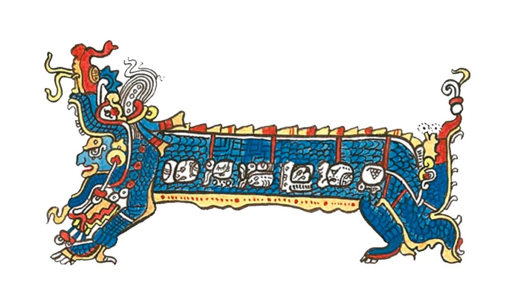 Itzamna is closely associated with the Principal Bird Deity, a transformative shape that symbolizes time and the cyclic nature of existence. This bird-like figure is often depicted holding a bicephalous snake, which represents the cyclical nature of time and life. The Principal Bird Deity signifies the eternal cycle of creation and destruction, highlighting Itzamna’s role in the ongoing process of cosmic renewal and transformation.